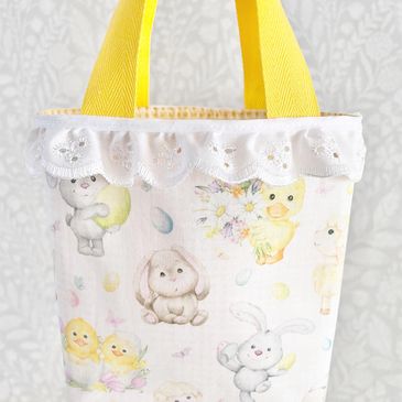 Each item is handmade with 100% cotton fabric, accessorised with different coloured handles, lining and ribbons. I hand decorate with pom poms, tassels and crystals to ensure every customer will receive something unique.