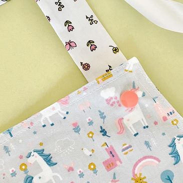 My children’s bags are designed to carry little toys and treasures. To encourage play and explore the world around. Made with gorgeous fun fabrics and soft handles which are the perfect size for little hands to hold. My blankets and taggies have been made with gorgeous cottons fabrics, soft fleece and silky ribbons that will help to comfort and settle your baby.